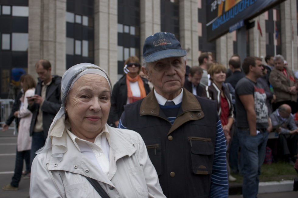 Kommunisten demonstrieren neben Nationalisten und Anhängern der demokratischen Bewegung Solidarnost. Die roten Fahnen der Kommunisten prägen jedoch das Bild und es fällt auf, wie viele ältere Leute an der Demonstration teilnehmen. Unter ihnen ist auch die 75-jährige Pensionärin Tatjana Glinka. Sie fürchtet sich nicht vor der Polizei. «Das Einzige wovor ich Angst habe, ist das sich in diesem Land nichts verändert.» Ihre Kinder sind nach Deutschland ausgewandert, während sie in Russland geblieben ist und seit Beginn der Demonstrationen im letzten Dezember an jeder teilgenommen hat. «Putin erinnert mich immer mehr an Stalin mit der Verhaftung von Leuten, die eine andere politische Meinung haben», sagt Tatjana Glinka. Diesem Vergleich stimmen nicht alle Demonstrierenden zu, allerdings sind sie sich einig, dass sie Putin loswerden wollen.