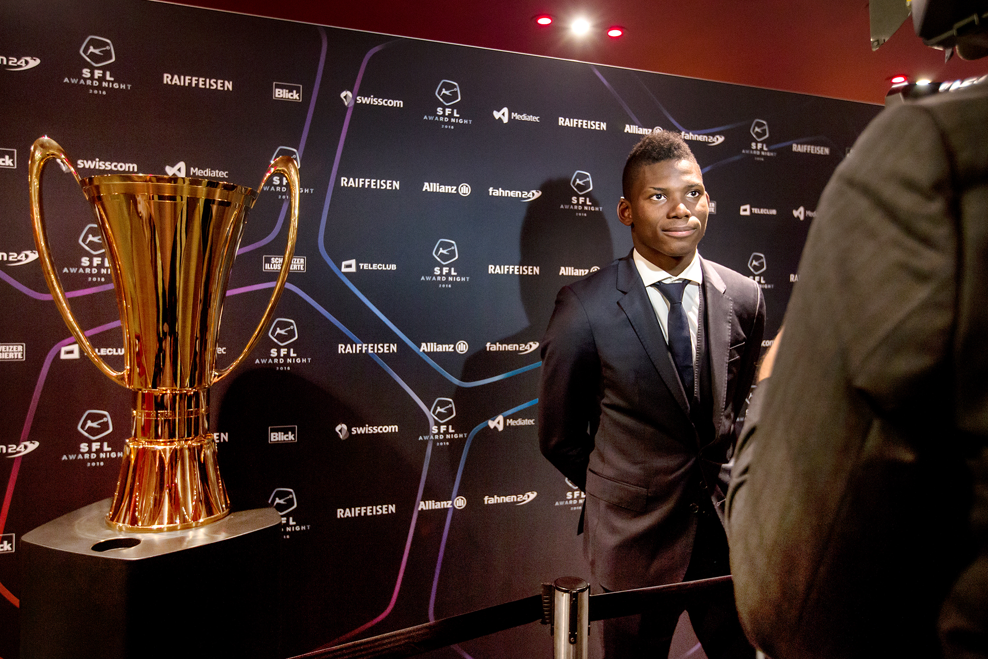 Mit zwei Plastik-Trophäen als Staubfänger für die Vitrine daheim und einer edlen Armbanduhr kommt der «grosse Abräumer» («Blick») von der Showbühne. Dann folgt der Interview-Marathon auf Deutsch und Französisch, bei dem Andrea Roth, die Medien-Koordinatorin des FCB, nicht von Embolos Seite weicht. So robust sein Spiel auf dem Fussballplatz, so beschützt und in Watte gepackt ist Embolo daneben.