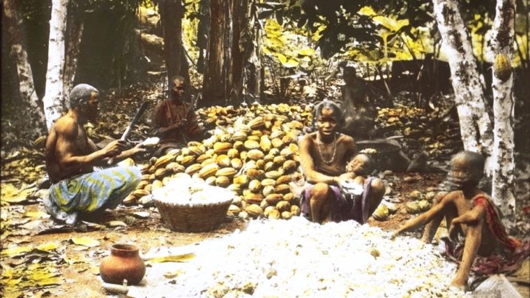 Neben der Verbreitung des Glaubens erachteten es die Missionare der 1815 gegründeten Basler Mission auch als ihre Aufgabe, unter den afrikanischen Heiden die europäische Arbeitsauffassung zu propagieren. In ihr sahen sie einen Garanten für die wirtschaftliche Besserstellung ihrer Schäfchen. In diesem Zusammenhang stehen auch die Bestrebungen, den ursprünglich in Zentralamerika beheimateten Kakao in der britischen Kolonie Goldküste, die 1957 in Ghana aufging, anzubauen.