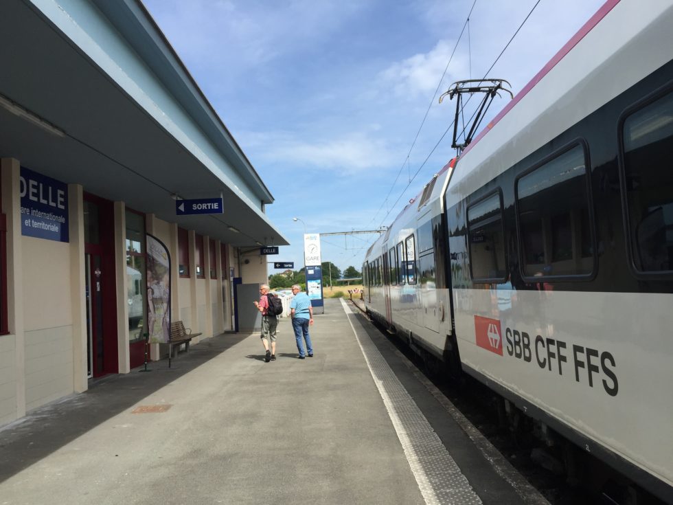 Letzteres ist dem Bahnhof Delémont nicht passiert. Trotzdem stranden wir auf unserer Fahrt nach Delle erst einmal im jurassischen Hauptort. Während der Zug von Moutier, in dem Daniel Holliger anreist, pünktlich eintrifft, verliert der Schnellzug Basel–Lausanne mit Martin Stohler an Bord während eines unplanmässigen Halts wertvolle Zeit. Als Martin schliesslich in Delémont eintrifft, ist der Regionalexpress nach Delle bereits abgefahren. So heisst es eine Stunde auf die nächste Verbindung warten.