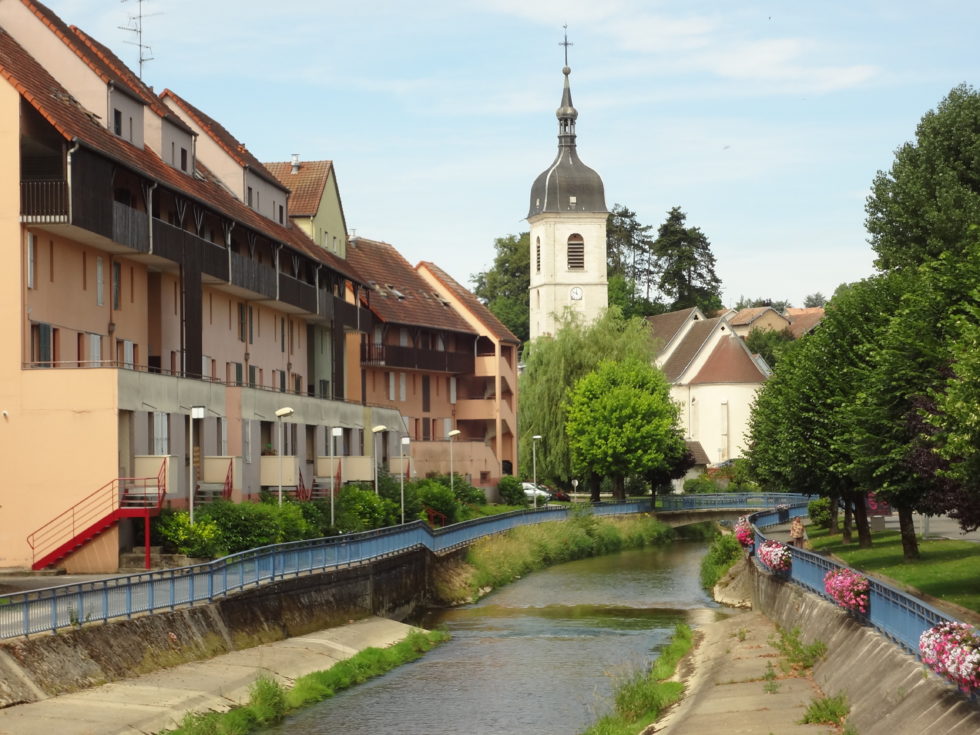 Gestärkt von unserem einfachen, aber ausgezeichneten Mittagessen, sehen wir uns Delle noch etwas genauer an. Allzu gross ist der Ort nicht, doch er hat Charme. Enge Gässchen, ein Flüsschen, dazu ein paar bunte Hausfassaden – vielleicht ist an einem Montag hier alles noch etwas verschlafener als während der anderen Tage. Zum Schluss genehmigen wir uns am Bahnhof noch eine kühle Glace.