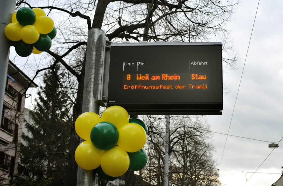 «Diesen Ansturm hat niemand erwartet», sagte Tina Finazzi, die als Kundenberaterin an einem Infostand der Basler Verkehrsbetriebe (BVB) arbeitete. Das Angebot der kleinen Geschenke hielt der Nachfrage nicht lange stand: Neben Tram-8-Lollipops und Broschüren gab es bis am Mittag auch 8er-Läggerli und -Bonbons. «Aber das ist alles weggegangen wie frische Weggli.»