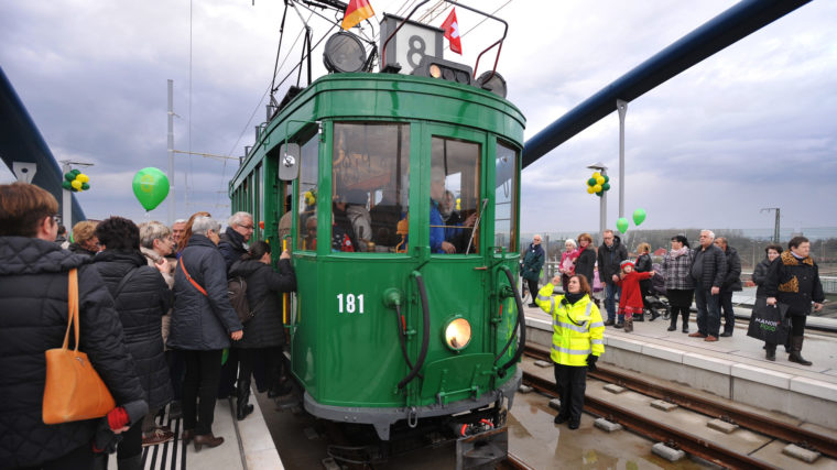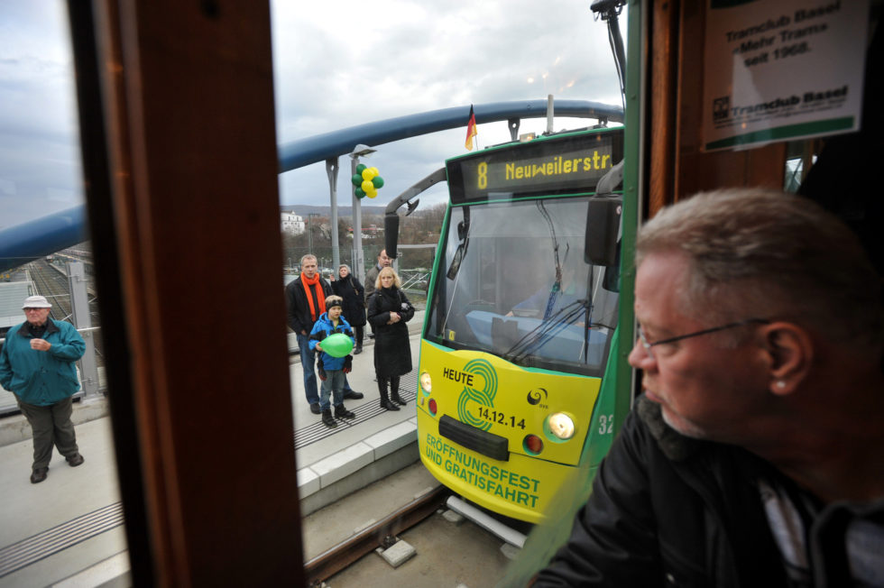 Das Fest zur Erweiterung der Tramlinie 8 hat am Sonntag wahre Menschenmassen angelockt: Besucher aus der ganzen Region drängten ins Tram. Für alle war die Fahrt auf der Achter-Linie an diesem Tag gratis; das kam offensichtlich an. Wer sich nicht am Drämmli-Gequetsche beteiligen wollte, dem musste der Anblick eines vorbeifahrenden Trams genügen. Das Drämmli in Weil am Rhein – ein historischer Moment – war ein beliebtes Fotosujet.