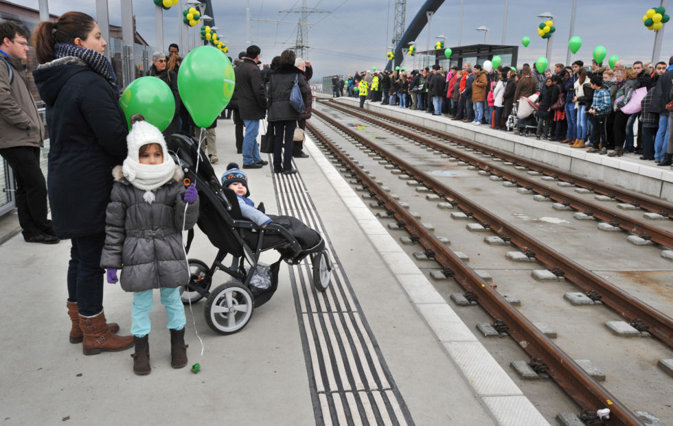 Die Eröffnungsfeier der Tramlinie 8 in Weil am Rhein lockte am Sonntag Massen von Schaulustigen aus der ganzen Region an. Mit einem derartigen Andrang haben die Organisatoren nicht gerechnet. Wer sich nicht ins Tram quetschen wollte oder konnte, musste sich mit einem Schienen-Spaziergang begnügen.