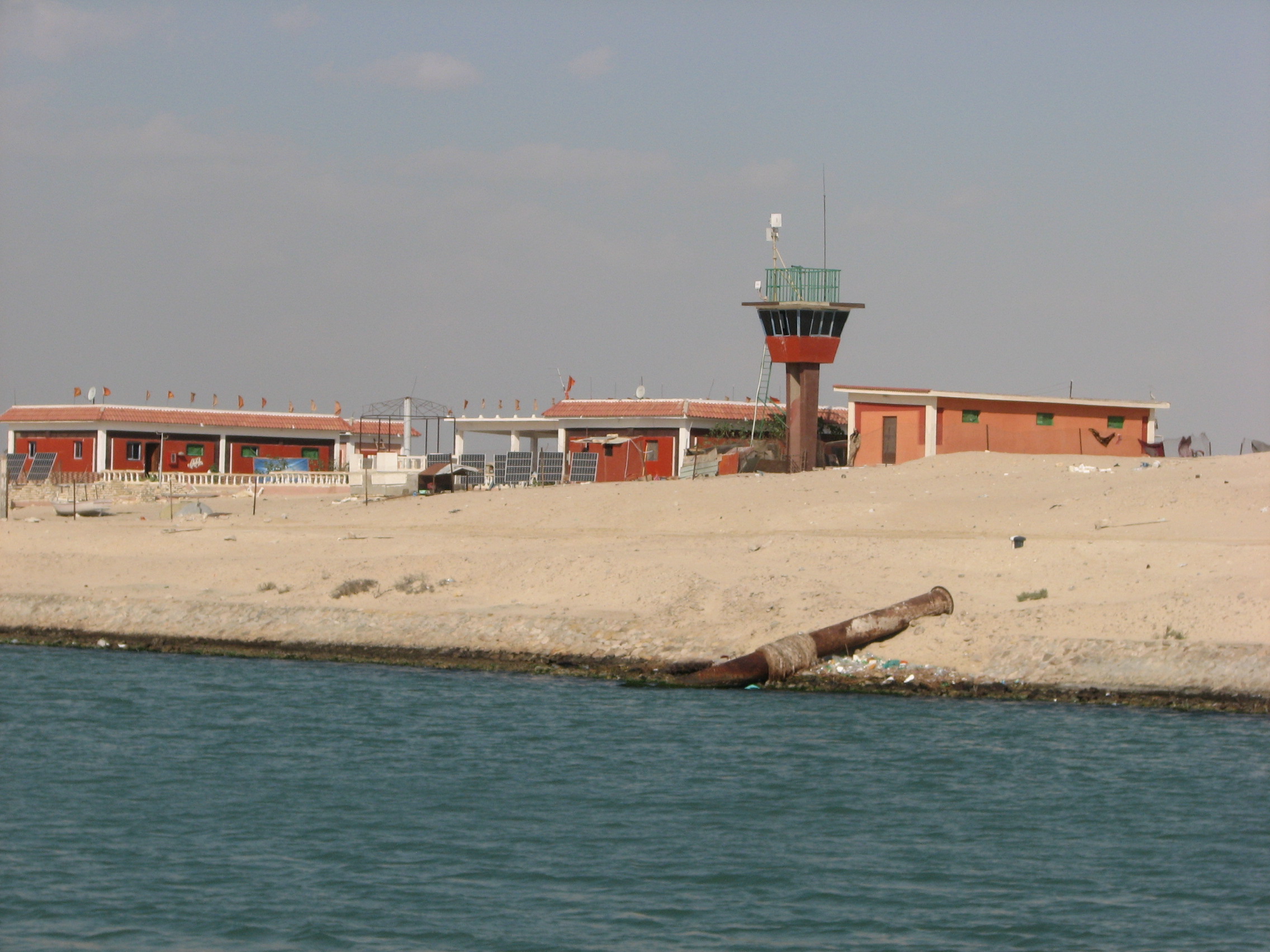 Vor drei Monaten war hier nichts als Wüste. Jetzt fahren die ersten Versorgungsschiffe durch einen zehn Meter tiefen Servicekanal in ein Teilstück des neuen Suez-Kanals. Vor wenigen Tagen erst wurde dieser Bauabschnitt geflutet. Beim Zusammenfluss ankert ein Hotelschiff, in dem Bauarbeiter untergebracht sind.