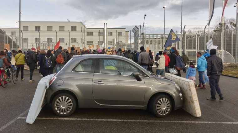 (Bild: Hans-Jörg Walter)Sie hämmerten auf den Zaun ein, sie riefen gegen die Kategorisierung von Menschen in legal und illegal an, sie waren wütend und laut und sie waren viele. Aber sie waren doch ohnmächtig. Am Donnerstag hatte die Basler Polizei acht Asylbewerber aus der besetzten Matthäuskirche geholt und in das Ausschaffungsgefängnis Bässlergut gesteckt, und heute Samstag standen gegen 300 Menschen vor eben diesem Gefängnis und forderten deren Freilassung.