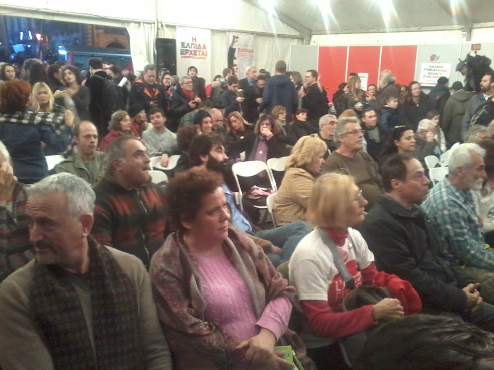 Dann benenne mir bitte genauer die Gründe für deine gemischten Gefühle. Teilt Kostas deine Meinung? Natürlich haben mich, als ich vorher bei Syriza war, zunächst einmal der Ort und die Menschen in ihren Bann gezogen. Die ganze Welt schaut heute nach Griechenland. Anderseits kann ich aber die Hoffnung vieler Griechen sehr gut verstehen und bin selber auch überzeugt, dass nur Syriza Bewegung in die schwierige politische und ökonomische Situation bringen kann. Mit diesem Wahlergebnis, das dem linken Bündnis aktuellen Hochrechnungen nach 36-36,5 % der Stimmen bringt, ist ein Zeichen gesetzt. Darauf haben die Linken in ganz Europa gewartet. Wir werden sehen, was die mit Spannung erwarteten spanischen Wahlen im November bringen werden. Einig sind wir uns wohl darin, dass Europa Veränderungen dringend nötig hat.
