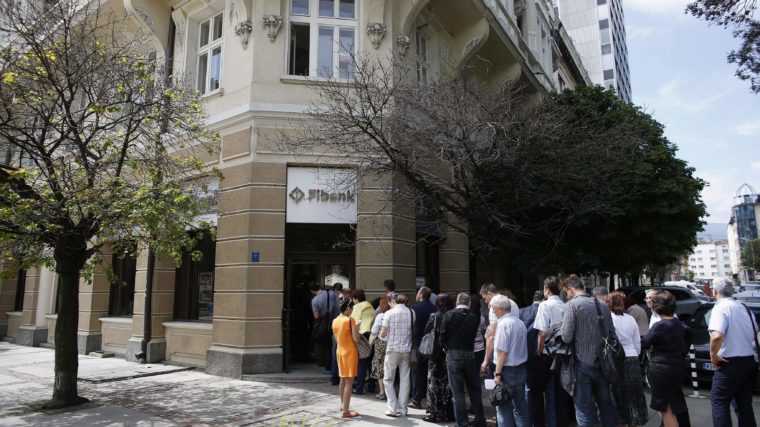Am Freitag standen die Menschen Schlange vor der Ersten Investitionsbank, ermuntert wurden sie von anonymen Warn-SMS. (Bild: STOYAN NENOV)