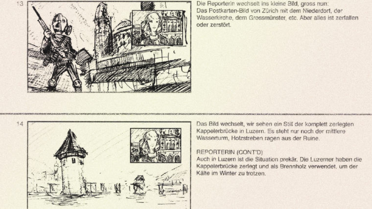 Doch jetzt liefert das Storyboard des Kurzfilms, das der WOZ vorliegt, einen detaillierten Einblick in den Film der Economiesuisse. In der Filmskizze wird eine apokalyptische Zukunft nach einer allfälligen Annahme der Minder-Initiative in dreissig Szenen beschrieben.