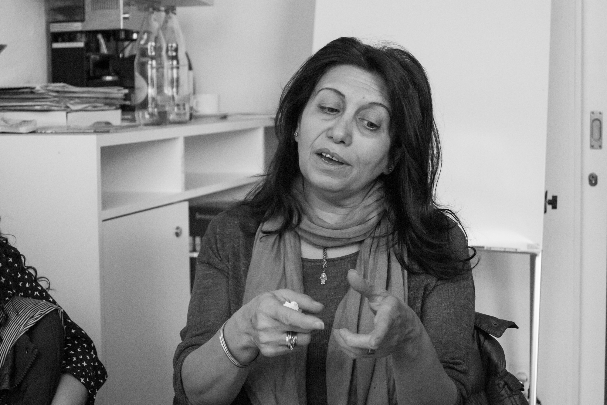 Ich bin eine Frau aus Damaskus. Seit dreissig Jahren bin ich politisch aktiv. Als Frauenrechtsaktivistin verfolge ich das Ziel, dass syrische Frauen mehr Rechte erhalten und an politischen Prozessen teilnehmen können. Dies ist ein politischer Kampf, aber auch ein Kampf gegen die Sitten und Bräuche, die die Frauen einschränken.