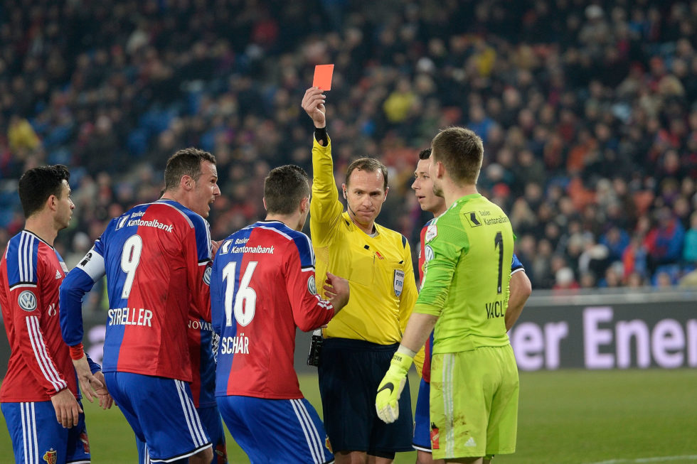 Das Verdikt von Schiedsrichter Sascha Amhof war: Penalty für Sion und rote Karte für Vaclik, entsprechend der umstrittenen, aber sich unverändert in Kraft befindenden Regel, die eine solche Mehrfachbestrafung zulässt. Was die Fernsehbilder jedoch ziemlich eindeutig belegen: Das Schiedsrichtergespann lag daneben bei seiner Entscheidungskette. Assistent Raffael Zeder zeigte eine – zugegebenermassen schwer zu erkennende – knappe Abseitsstellung Konates nicht an. Und der Sittener Stürmer hob, nachdem er den Ball weit an Vaclik vorbei gelegt hatte, ab zu einer Flugeinlage, ohne dass ihn der FCB-Goalie getroffen hätte.