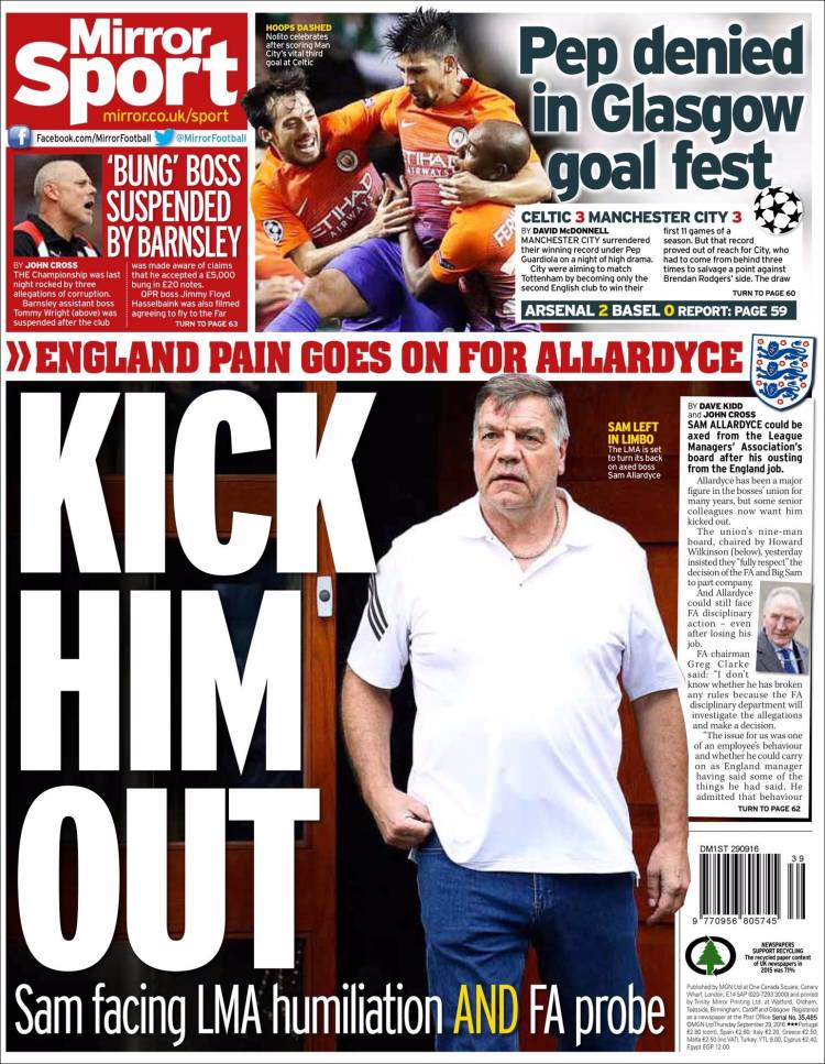 Englands Fussball hat andere Sorgen als den Auftritt eines Schweizer Meisters im Emirates Stadium. Wer am Tag nach der 0:2-Niederlage des FC Basel gegen Arsenal in London die Zeitungen aufschlägt, dem blickt Sam Allardyce entgegen.