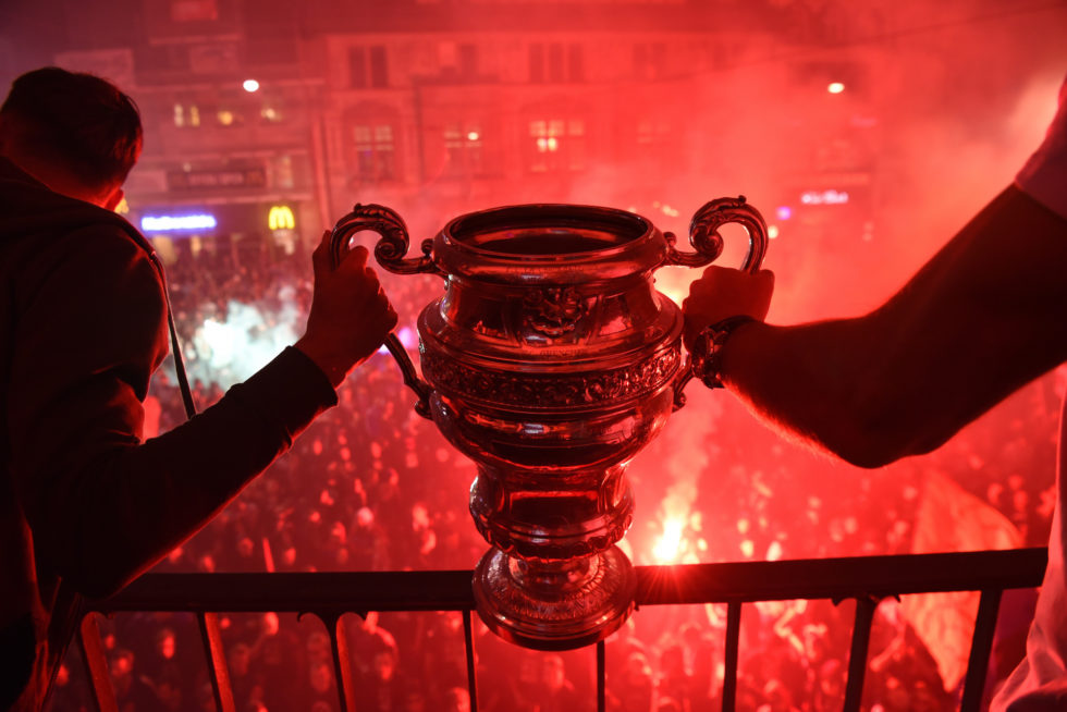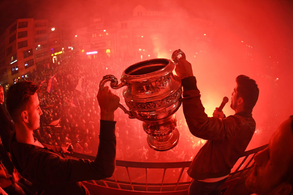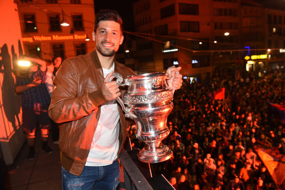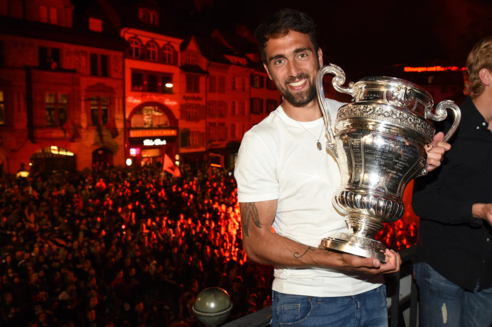 Die Sandoz-Trophäe – nach drei verlorenen Finals zurück Basel, wo der FCB seinen zwölften Sieg im Schweizer Cup feierte.