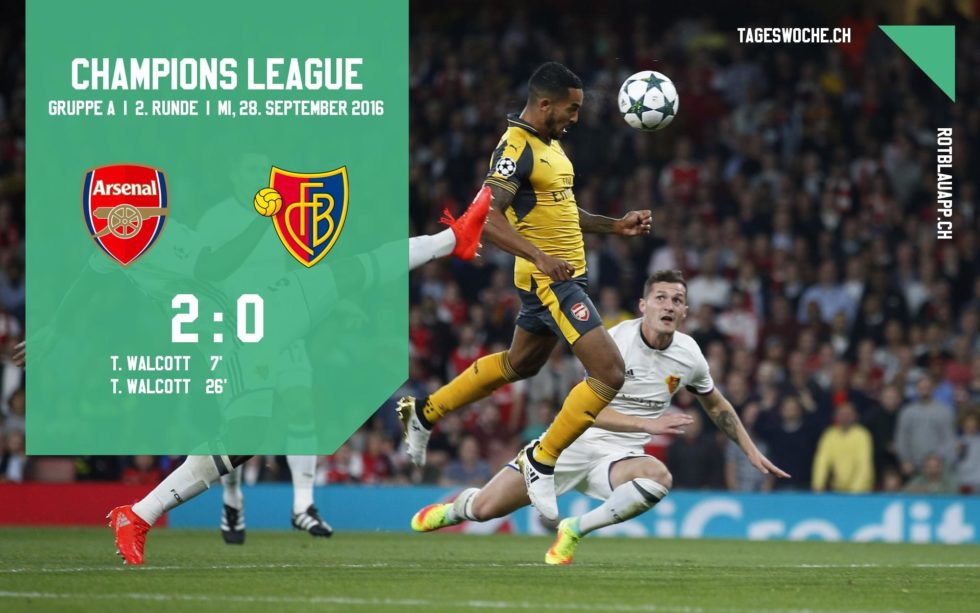Ohne jede Aussicht auf ein besseres Resultat verliert der FC Basel beim überlegenen Arsenal mit 0:2. Theo Walcott erzielt vor 60’000 Zuschauern beide Tore der Engländer vor der Pause, und nicht nur in diesen Szenen war der Schweizer Meister überfordert.