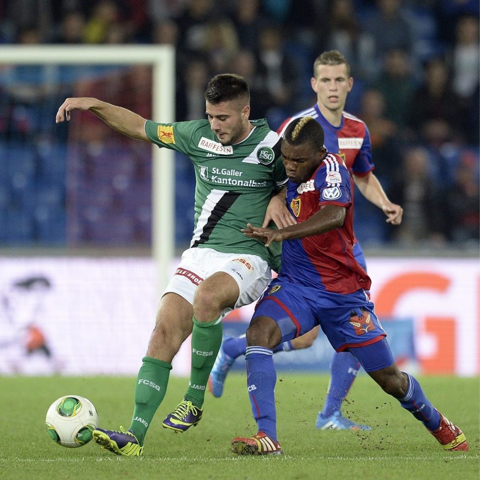 Gegen Philippe Montandon, den St. Galler Captain in der Innenverteidigung zu spielen ist kein Zuckerschlecken. Der Basler Captain stürzte sich mutig in die Luftkämpfe, gewann beileibe nicht viele, aber am Boden ist er eben auch gewitzt – und vollendete Freis klasse Vorarbeit mit der Ruhe eines Goalgetters zum 2:0. Strellers sechstes Tor in der laufenden Meisterschaft.