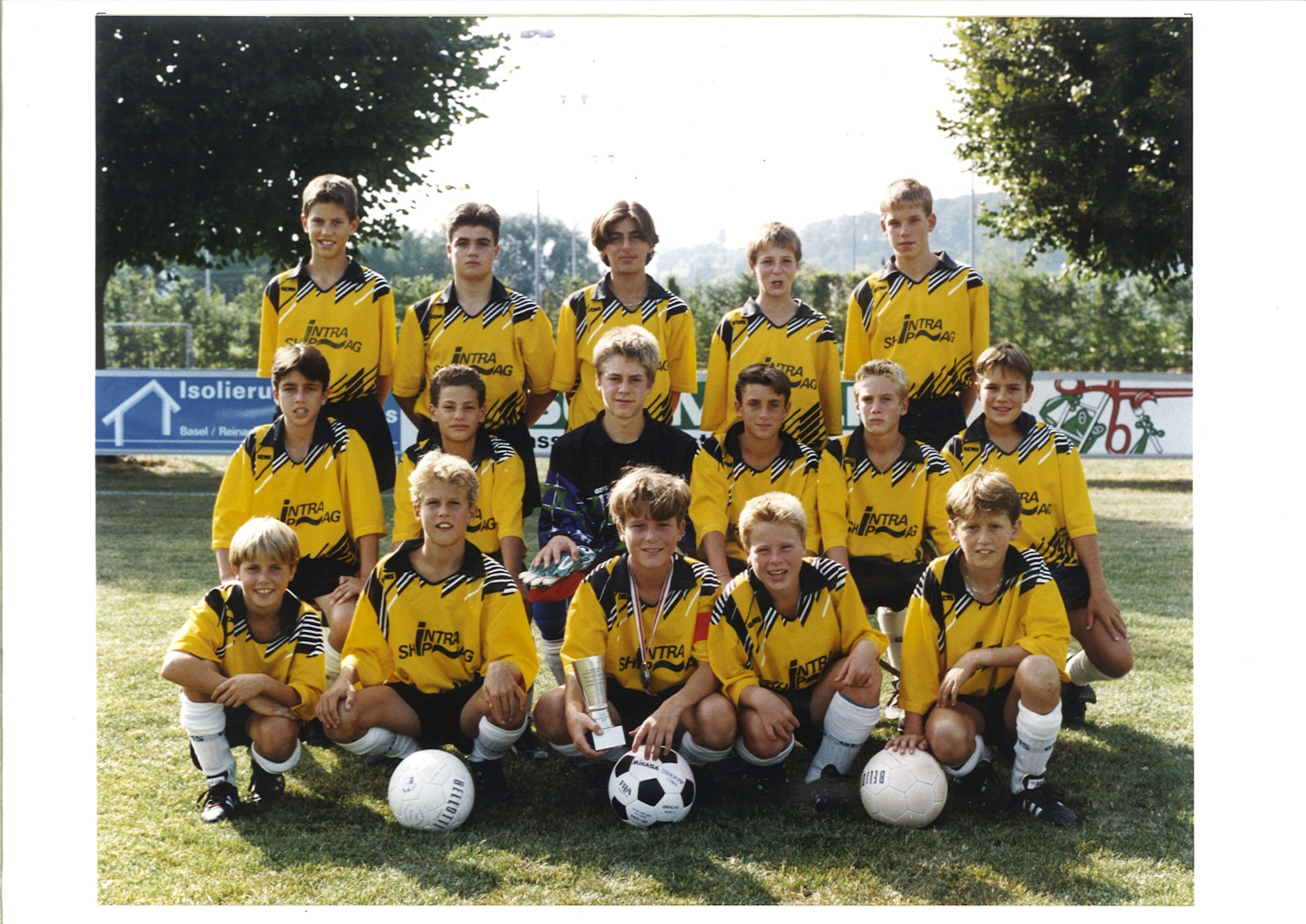 Dieses Bild wollten wir Ihnen nicht vorenthalten. Es stammt aus den gemeinsamen Zeiten von Marco Streller und Alex Frei bei den Junioren des FC Aesch, genauer aus der Saison 1992/93. Und man sieht, dass damals schon Titel und Pokale gesammelt wurden. Aufgestöbert haben wir die Aufnahme bei Daniele Faella (mittlere Reihe, rechts neben dem Goalie), seinerzeit der Stürmer, den Streller und Frei fütterten, heute immer noch ihr Coiffeur des Vertrauens im Gundeli.