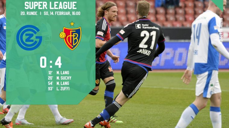 Der FC Basel hat nach der 20. Runde 15 Punkte Vorsprung auf den ersten Verfolger GC. Beim 4:0-Sieg gegen die Zürcher spielen die Basler nach der roten Karte gegen Marc Janko eine Stunde lang zu zehnt. Für die frühe Führung sorgen Michael Lang und Marek Suchy, den dritten Treffer erziele wiederum Lang, Luca Zuffi sorgt in der Nachspielzeit für das 4:0.