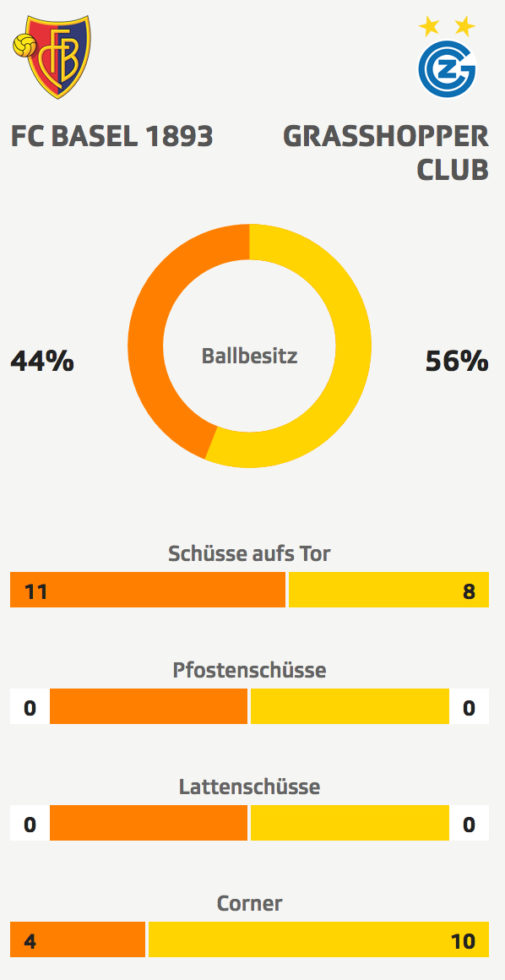 Zwei Tore in Unterzahl sind zwar ein Leistungsausweis für die Basler, der Rest ist jedoch nicht über jeden Zweifel erhaben. Wieder kassiert er ein Tor auf einen stehenden Ball (Eckballverhältnis: 10:4 für GC), wie schon am Mittwoch gegen Paok Thessaloniki kam Zuffi zu spät (diesmal bei Nabil Bahouis Kopfball), und auch der zweite Gegentreffer (Marco Djuricin) geht auf Zürcher Lufthoheit zurück. Schon bei numerischer Gleichzahl hatte GC mehr Ballbesitz, und am Schluss sind es 56 Prozent.
