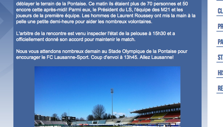 Am Freitag noch hatte sich Alain Joseph, Vizepräsident von Lausanne-Sport, unsicher gezeigt, ob die Pontaise rechtzeitig vom Schnee befreit werden könnte. Doch 35 mehr oder weniger freiwillige Schneeschipper (die Spieler der Waadtländer U21 sollen einen Grossteil der Aufgabe erledigt haben) waren der Schneepracht gewachsen.