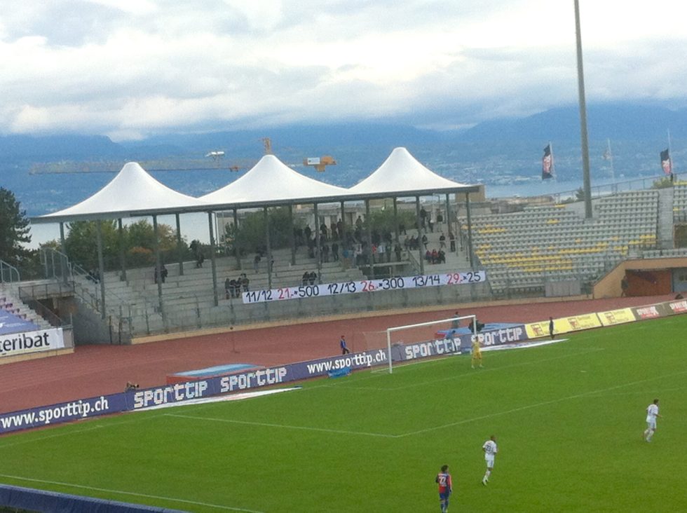 Die rund fünfzig Fans im Gästesektor hatten eine Botschaft dabei. Auf einem Transparent wurde dem FC Lausanne-Sport die Ticketpolitik vorgerechnet (-> Bilderschau). In der Saison 2011/12 kamen bei einem Eintrittspreis von 21 Franken noch rund 500 FCB-Fans mit an den Genfersee, vergangene Spielzeit waren es nach Darstellung der FCB-Fans bei einem Preis von 26 Franken noch 300. Für die 29 Franken, die Lausanne-Sport für die Heimpartie dieser 11. Runde haben wollte, kassierte der Tabellenletzte der Super League nun die Quittung: Der Fansektor, erst vergangene Saison aufgehübscht und mit einem Dach versehen, blieb weitgehend leer, die Atmosphäre auf der ohnehin schwierig mit Leben zu füllenden Pontaise mau.