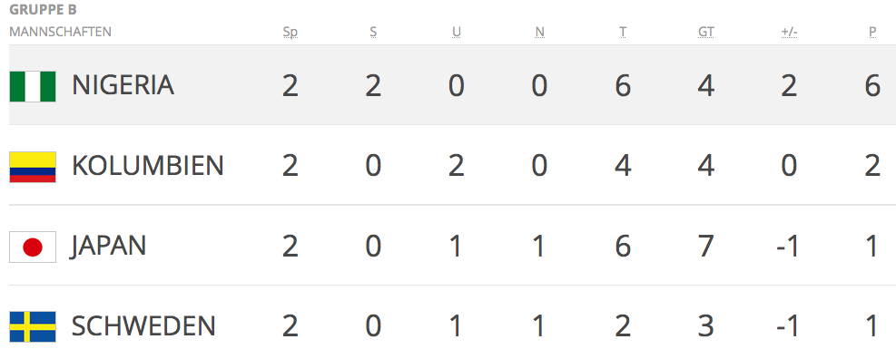 Am Mittwoch (24.00 Uhr MESZ) müssen die Schweden in Salvador nun Japan schlagen und darauf hoffen, dass Kolumbien nicht gegen Nigeria punktet, um die Viertelfinals zu erreichen. Dort wäre Dänemark, Gastgeber Brasilien, der nach zwei torlosen Remis mächtig unter Druck steht, oder der Irak der Gegner.