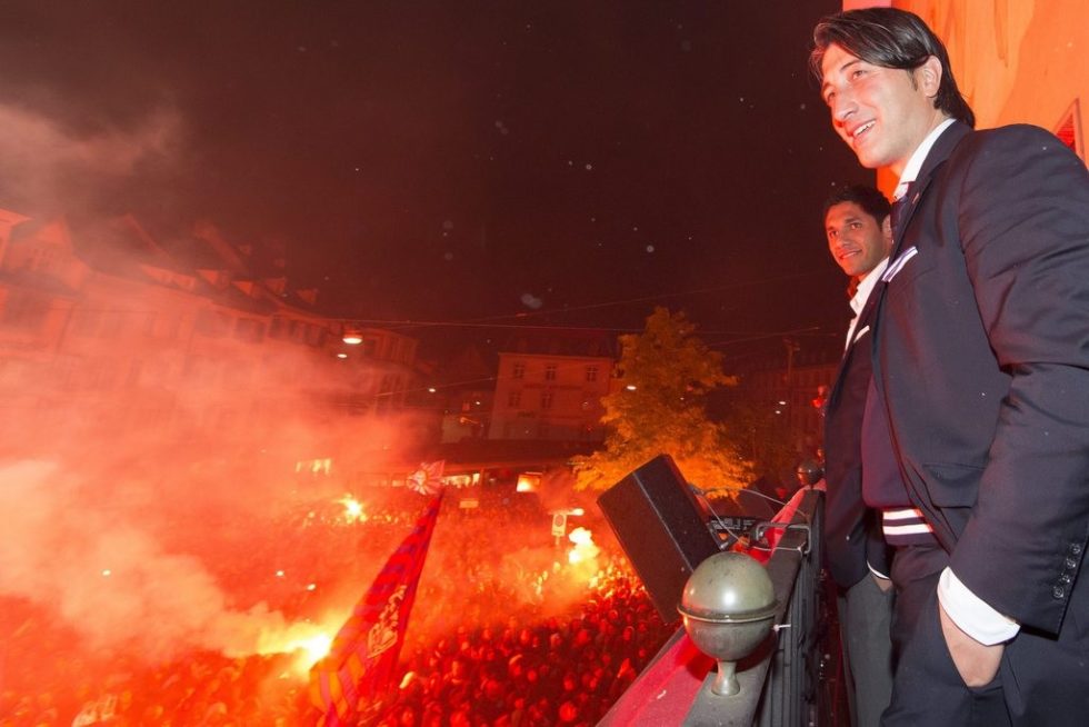 Viele Hände hatte Murat Yakin bis dahin geschüttelt, vielen hatten ihm auf die Schultern geklopft, und er hatte es genossen auf dem Balkon des Stadtcasinos. So wie beim letzten Mal vor acht Jahren, als er noch als Captain des FCB dort oben vor die ungeheuere Menge FCB-Fans unten auf dem Barfi getreten war.