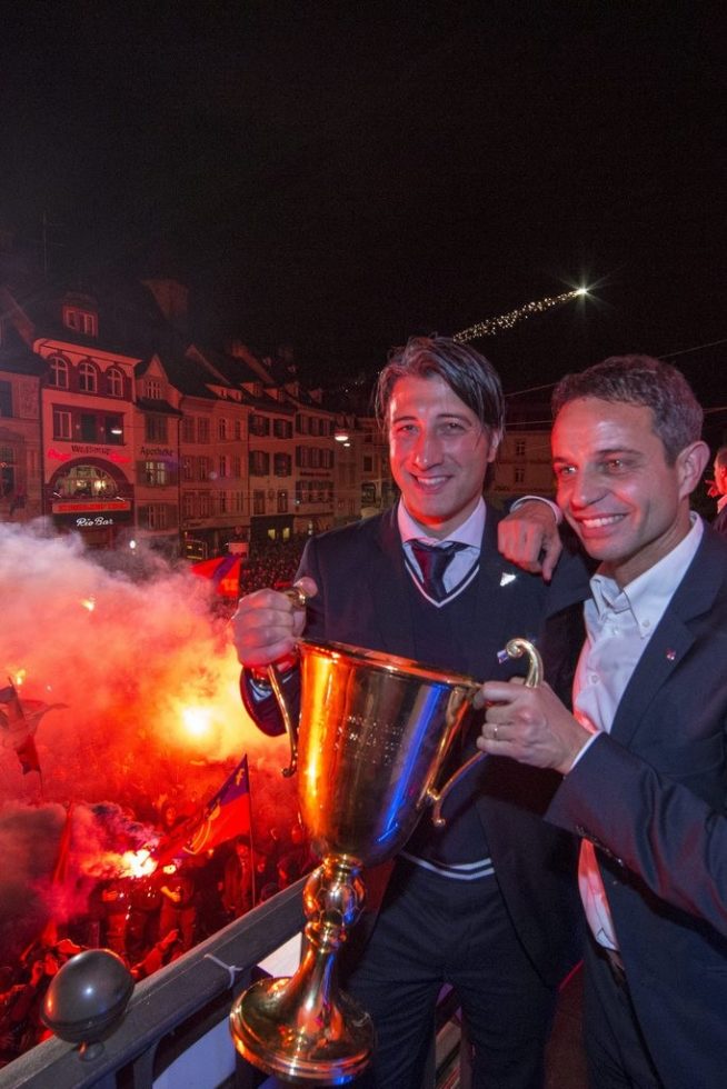Lässig wie gewohnt stand er dort oben, die Hände in der Hosentasche, und mit diesem souveränen Yakin-Lächeln im Gesicht, das in dieser Nacht aber nicht verbergen konnte, welchen Zauber dieser Moment auch auf den coolen Murat Yakin ausübte. Als einer der letzten aus dem FCB-Tross traf er dann zu vorgerückter Stunde auch noch im Volkshaus ein, wo die Spieler mit Angehörigen und Freunden feierten und tanzten bis der Sonntag Basel mit strahlender Sonne aufweckte.