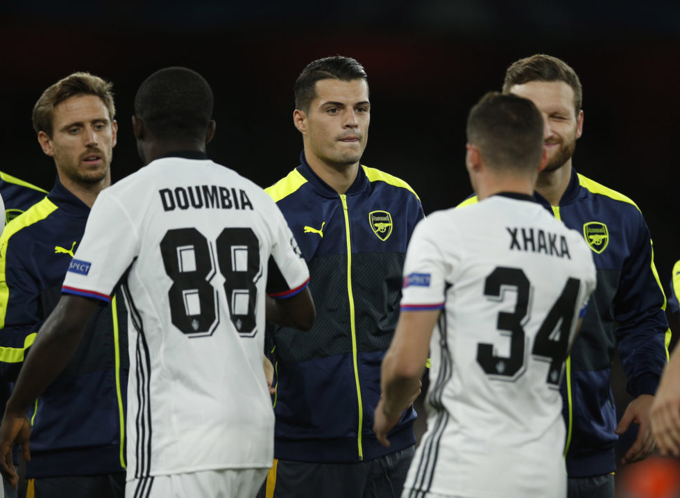 Britain Soccer Football - Arsenal v FC Basel - UEFA Champions League Group Stage - Group A - Emirates Stadium, London, England - 28/9/16 FC Basel's Taulant Xhaka with Brother Granit Xhaka of Arsenal Reuters / Stefan Wermuth Livepic EDITORIAL USE ONLY.