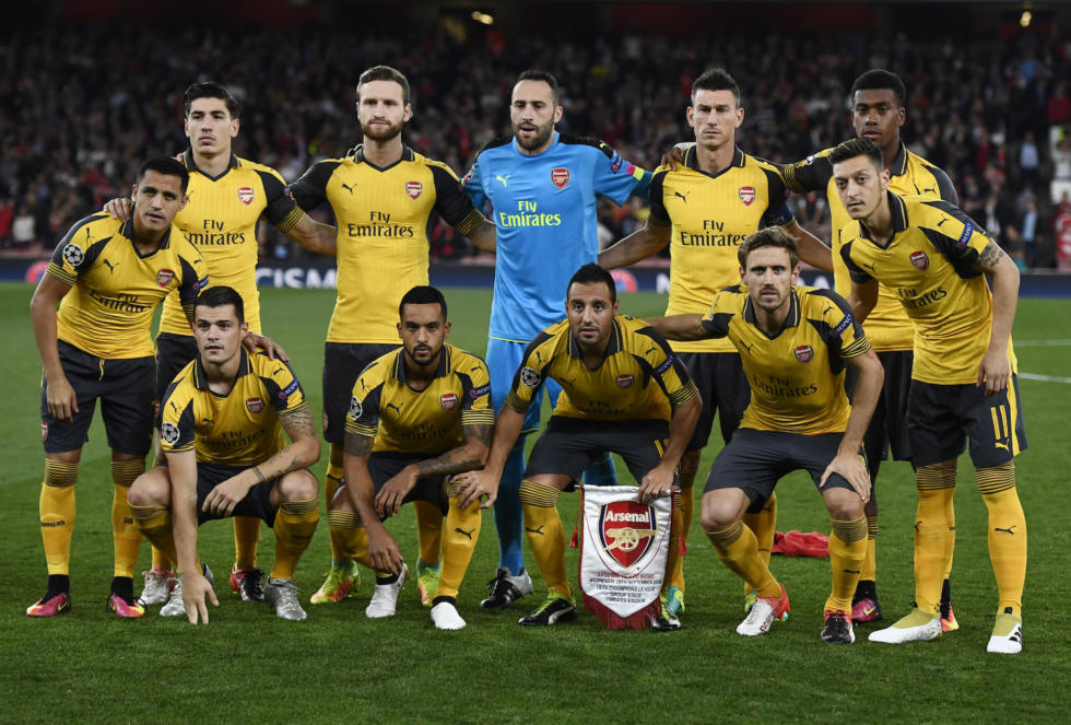 Britain Soccer Football - Arsenal v FC Basel - UEFA Champions League Group Stage - Group A - Emirates Stadium, London, England - 28/9/16 Arsenal's players pose for a team group photo before the match Reuters / Dylan Martinez Livepic EDITORIAL USE ONLY.
