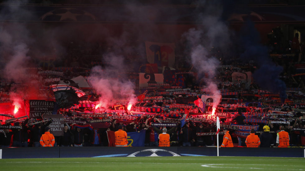 Britain Soccer Football - Arsenal v FC Basel - UEFA Champions League Group Stage - Group A - Emirates Stadium, London, England - 28/9/16 FC Basel fans with flares Action Images via Reuters / Andrew Couldridge Livepic EDITORIAL USE ONLY.