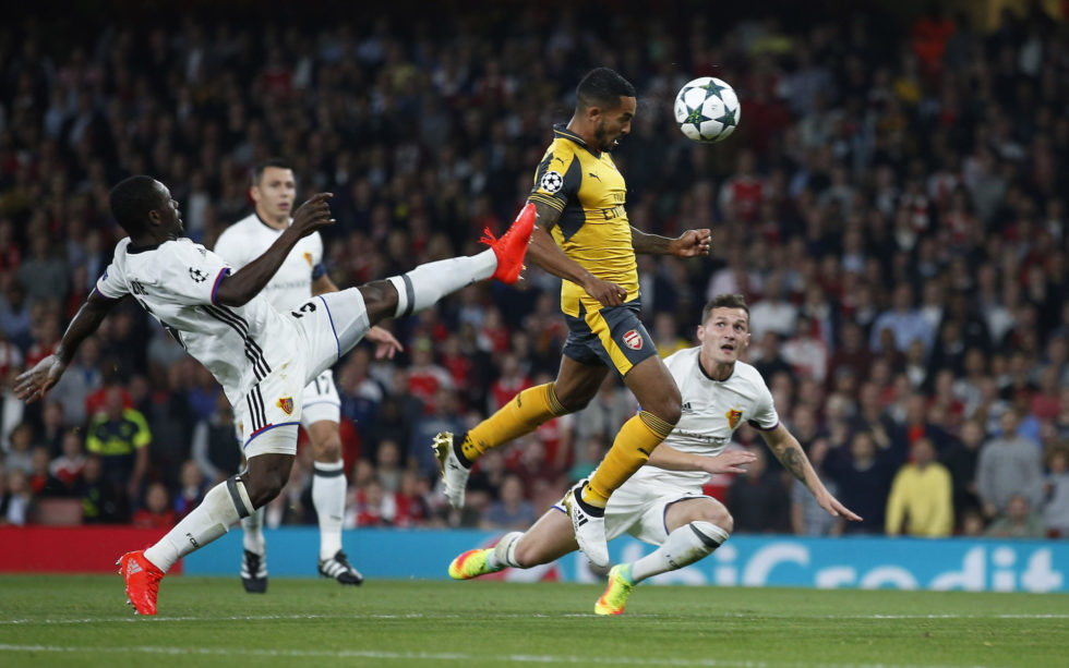 Britain Soccer Football - Arsenal v FC Basel - UEFA Champions League Group Stage - Group A - Emirates Stadium, London, England - 28/9/16 Arsenal's Theo Walcott scores their first goal Action Images via Reuters / Andrew Couldridge Livepic EDITORIAL USE ONLY.