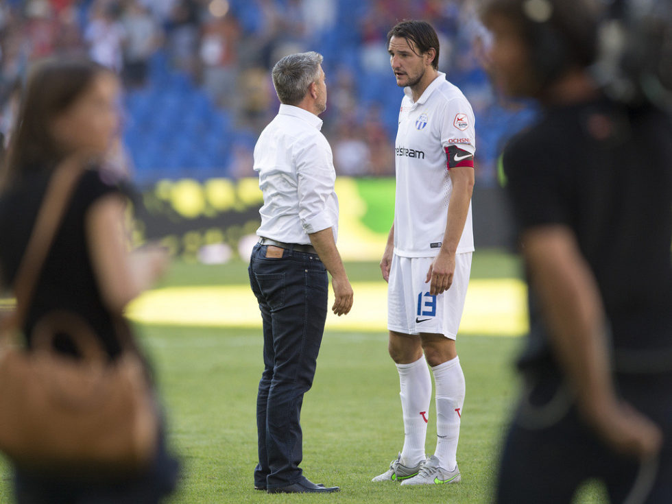 Man kennt sich aus früheren Zeiten beim FC Zürich: Fischer mit Zürichs Captain Alain Nef.
