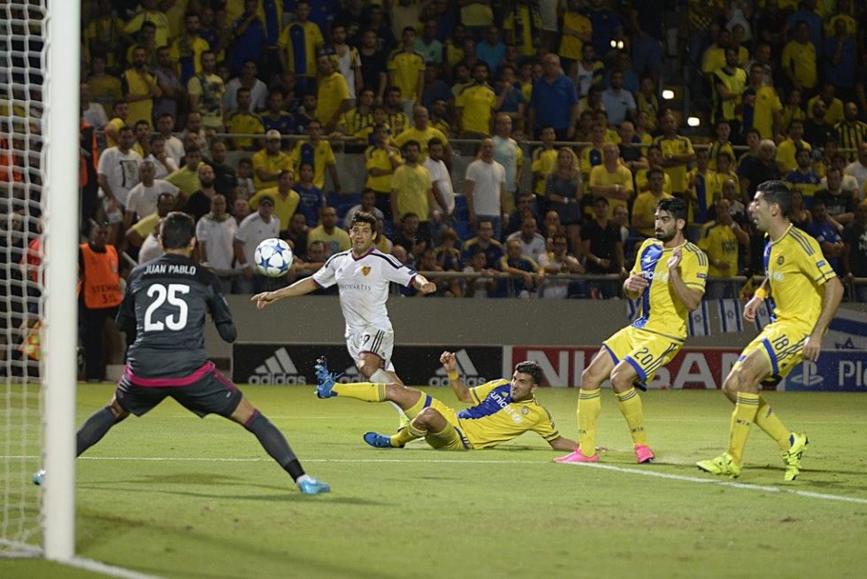 Dabei fängt es nicht schlecht an: Davide Calla prüft Maccabi-Keeper Juan Pablo.