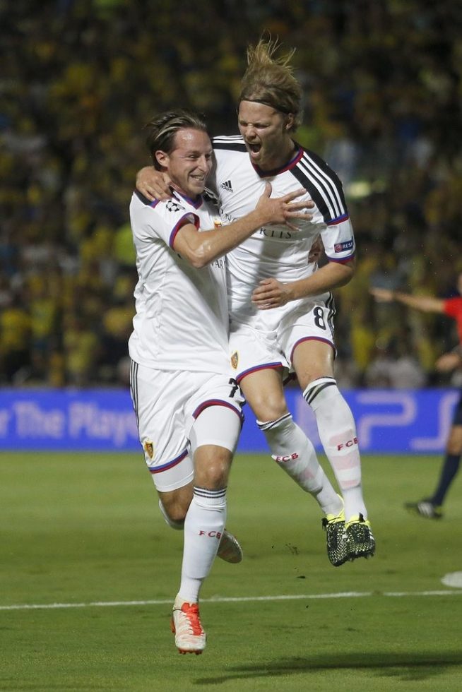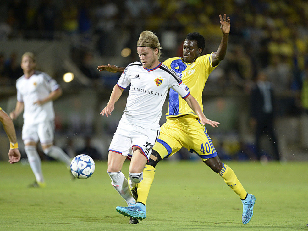 Die frühe Führung: Luca Zuffi (links) wird von Birkir Bjarnason bestürmt...