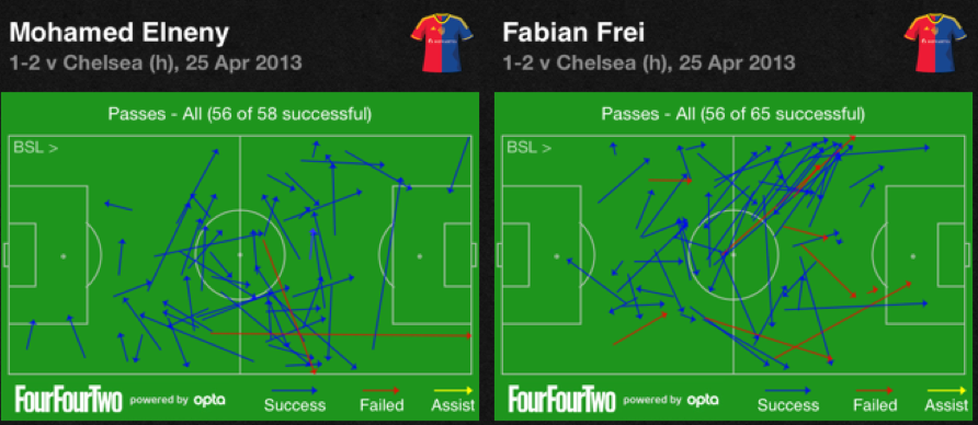 Die Pässe der beiden häufigsten Basler Passgeber Elneny und Frei. Quelle: Fourfourtwo.com.