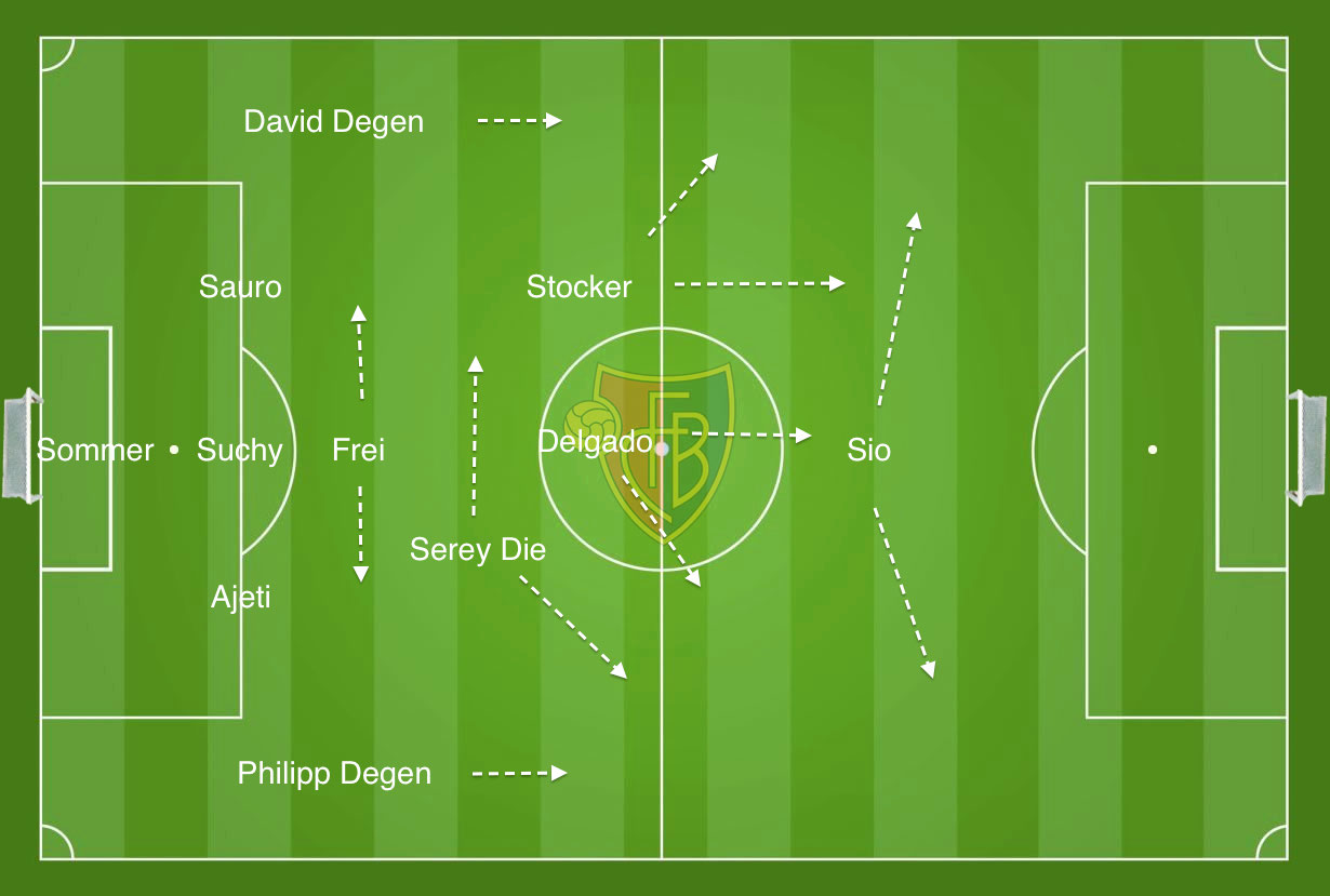 Indem der FCB praktisch mit einer Fünferkette spielte und sich Frei, Stocker und Serey Die zudem oft nach hinten fallen liessen, hatten die Basler in der eigenen Verteidigungszone stets viele Spieler in Ballnähe.