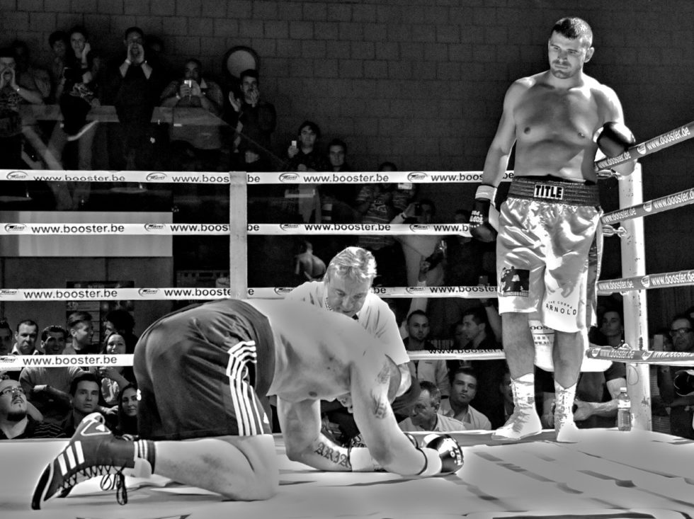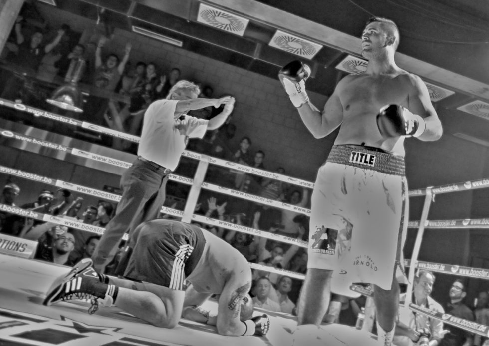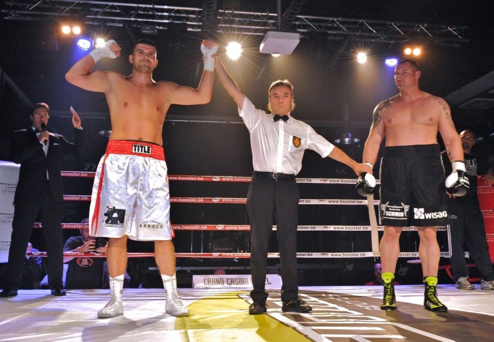 Vielleicht hatte der Deutsche die Aufforderung nicht gehört. Kaum zehn Sekunden später jedenfalls hatte er noch grössere Probleme mit seinem Gehör: Ein Volltreffer seines Gegners Arnold «the Cobra» Gjergjaj hatte ihm einen Riss im Trommelfell seines rechten Ohres zugefügt. Nach 1:18 in der ersten Runde war der Kampf durch K.o. zugunsten des Kämpfers des Boxclub Basel entschieden.