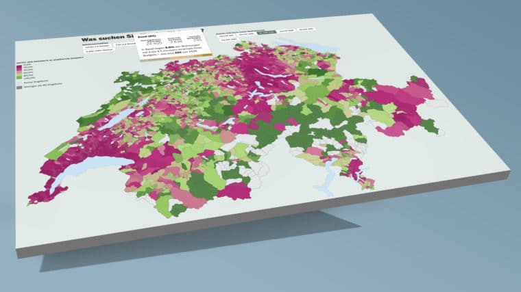 In der Schweiz eine Wohnung zu finden, die den eigenen Bedürfnissen und finanziellen Möglichkeiten entspricht, ist nicht ganz einfach. An welchen Orten es am besten gelingt (oder eben gar nicht), zeigt der «Tages-Anzeiger» mit einer interaktiven Karte. Sie wurde anhand von knapp einer Million Wohnungsinseraten erstellt.