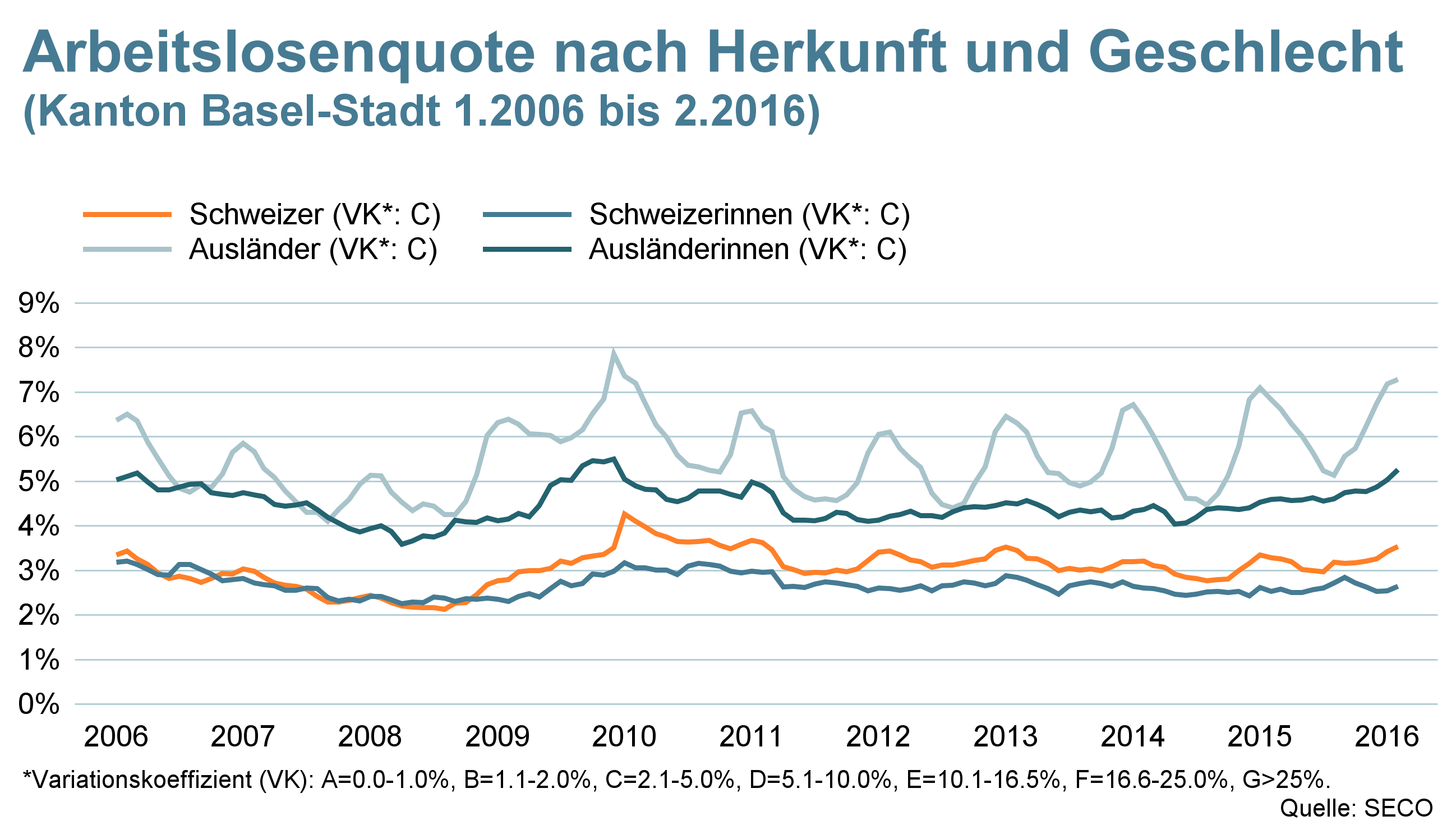 Im letzten Jahr stiegen die Arbeitslosenquoten in der Schweiz und in Basel-Stadt leicht an, was mit dem Frankenschock in Verbindung steht. Nun zeigt sich: Auch 2016 ist der Schock noch nicht verdaut.